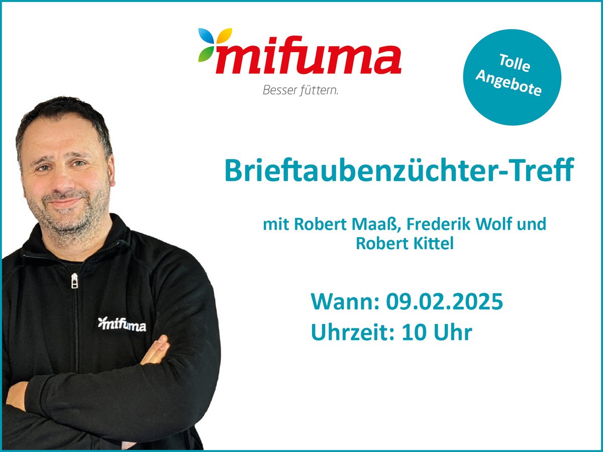 - Podiumsdiskussion: Im Anschluss stehen unsere Experten für Ihre Fragen bereit und diskutieren aktuelle Themen rund um Zucht, Fütterung und den Brieftaubensport.