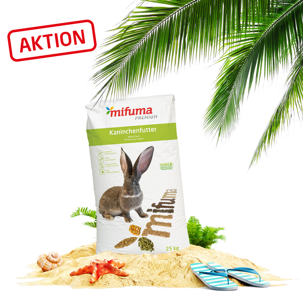 Profitieren Sie im Aktionszeitraum vom 04. -23. August von attraktiven Sonderpreisen auf unsere bewährten Futtersorten Basis, Plus und Kombi – ideal abgestimmt auf die Bedürfnisse kleiner, mittelgroßer und großer Kaninchenrassen in der Zuchtruhe.