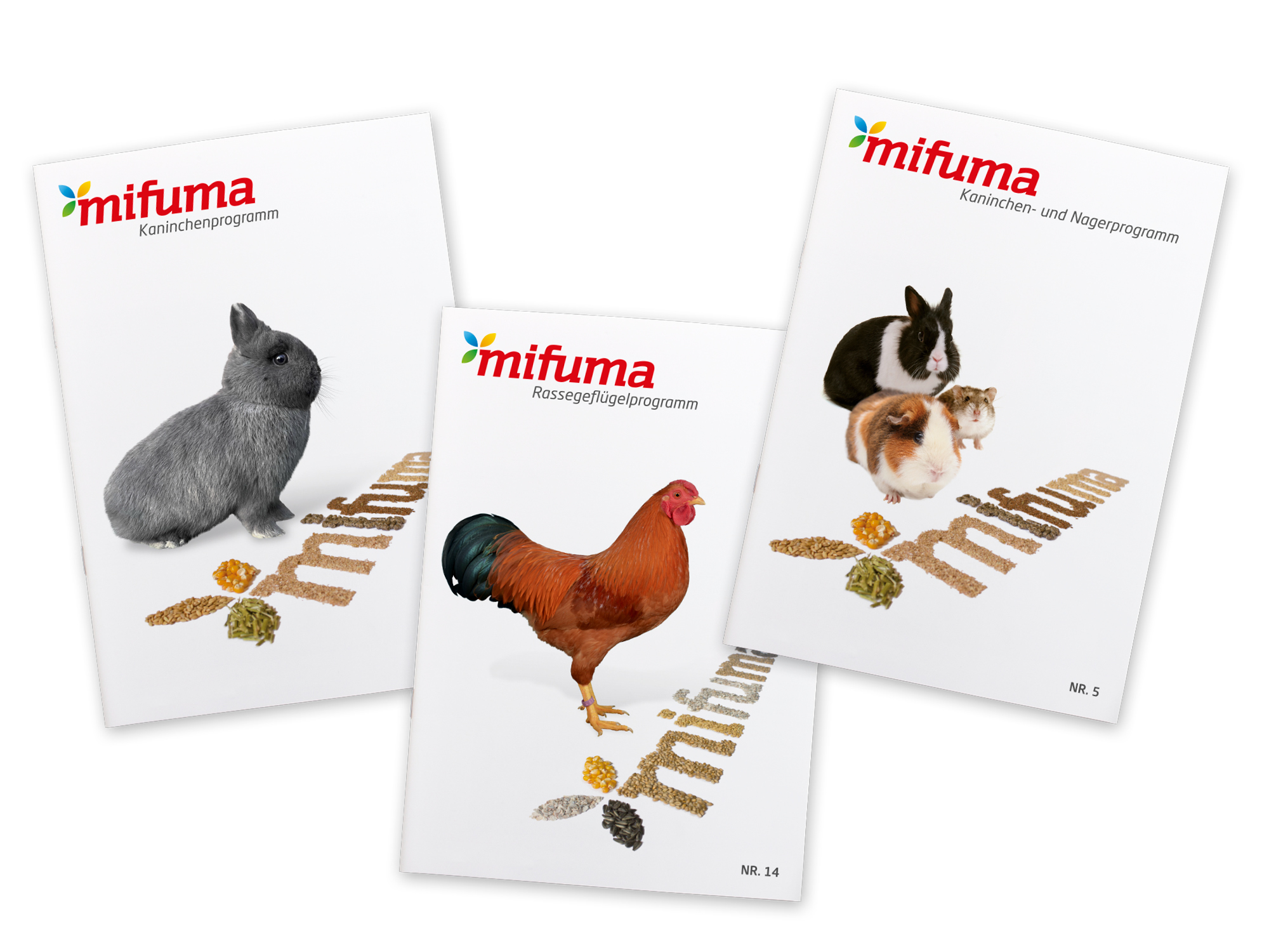 Pünktlich zur Ausstellungssaison sind unsere neuen Broschüren für Kaninchen, Nager und Rassegeflügel verfügbar. Darin finden Sie unsere Produktneuheiten und viele interessante Informationen. Sie können die Broschüren bequem unter www.mifuma.de herunterladen oder schreiben Sie eine E-Mail an info@mifuma.de mit ihrer Broschüren-Bestellung. |