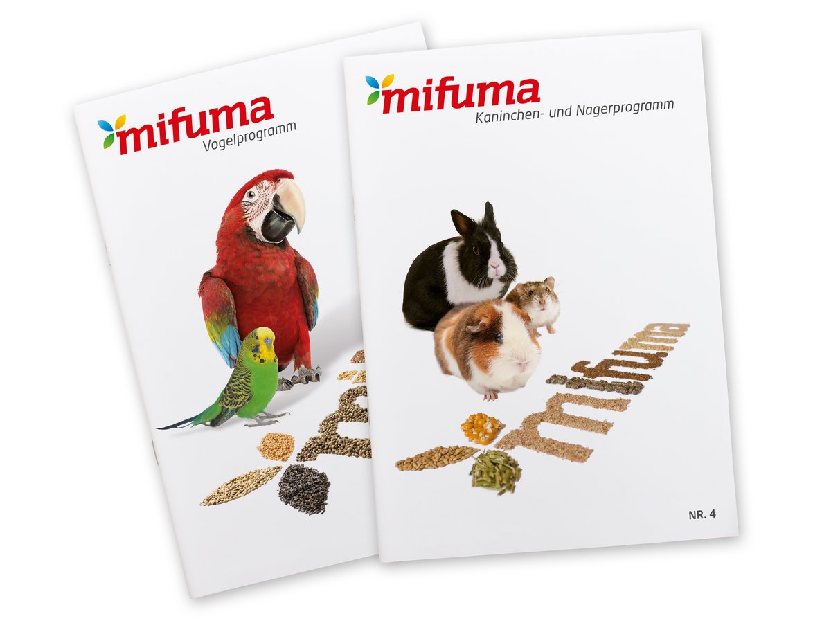Die vierte Auflage des Vogelprogramms ist erschienen, ebenso wie das neue Kaninchen- und Nagerprogramm. Die Ausgaben sind sowohl als gedruckte Broschüre bei Mifuma Fachhändlern und uns erhältlich als auch online abzurufen. In den Heften finden Sie eine aktuelle Übersicht über alle Futter und Spezialprodukte sowie einige neue Mischungen.