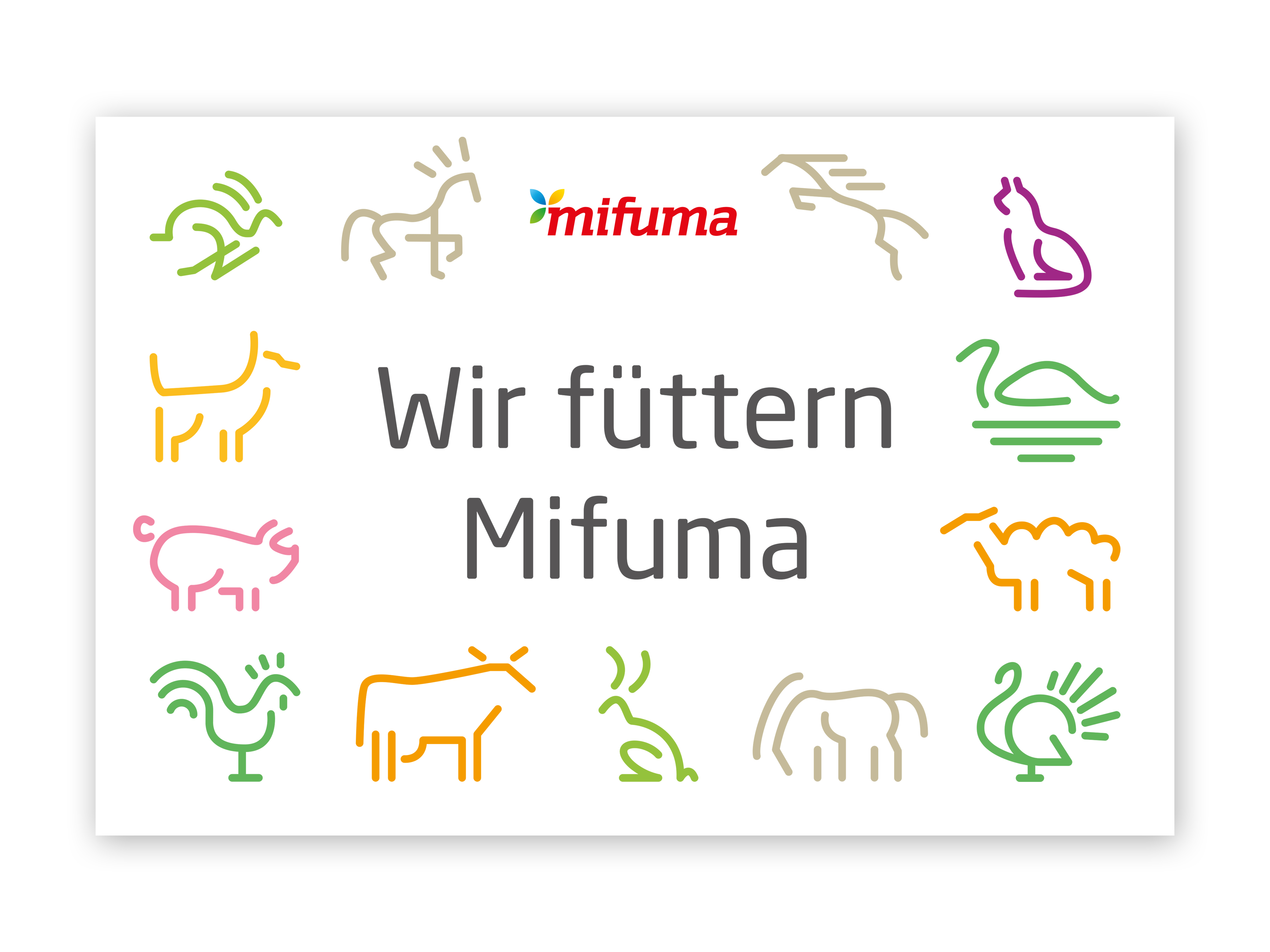 Das Schild mit der Aufschrift “Wir füttern Mifuma” aus Alu-Dibond. Maße: 30x 20 cm. Mit vorgebohrten Löchern.